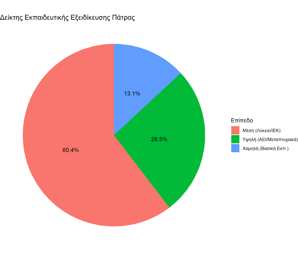 Υψηλή (ΑΕΙ/Μεταπτυχιακά)26,5%Κάτοχοι πτυχίων ανώτατης εκπαίδευσης και μεταπτυχιακών τίτλων.