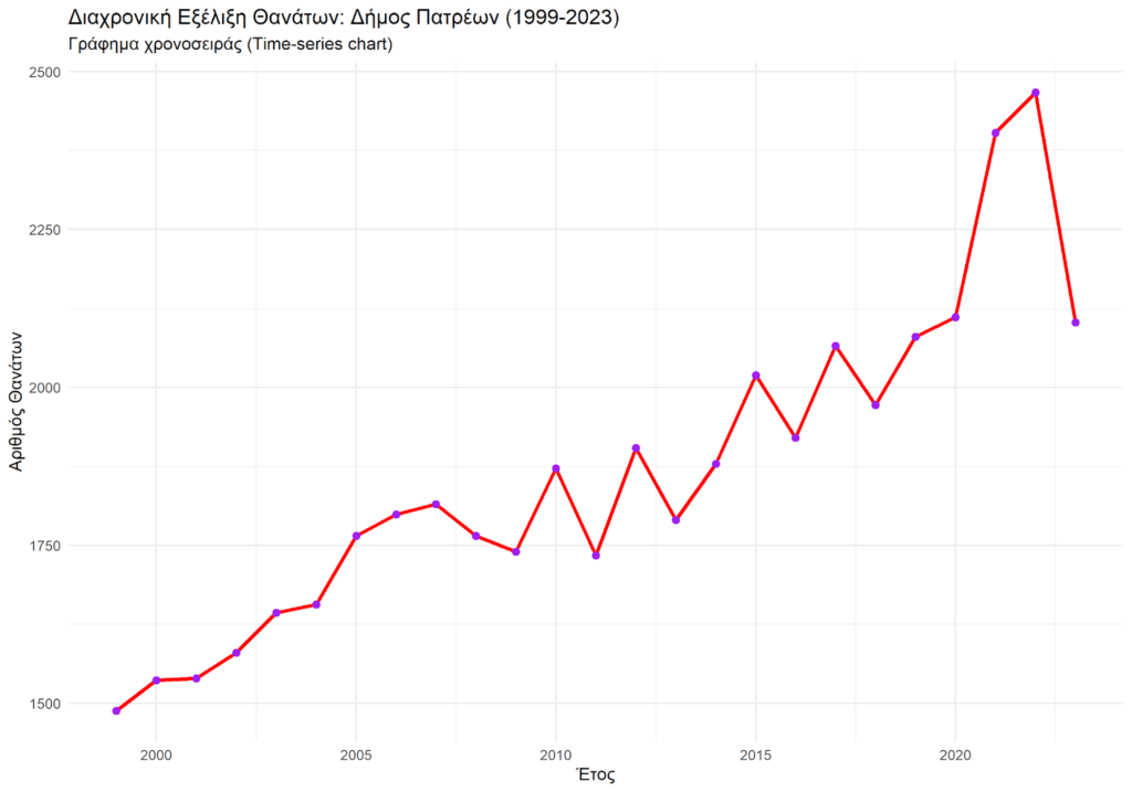 Γράφημα πορείας των θανάτων του Δήμου Πατρέων στο πέρασμα των χρόνων (1999-2023)